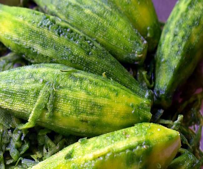 Beef, pork or potato mixture are stuffed in the hollow space of bitter gourd for making stuffing dishes.