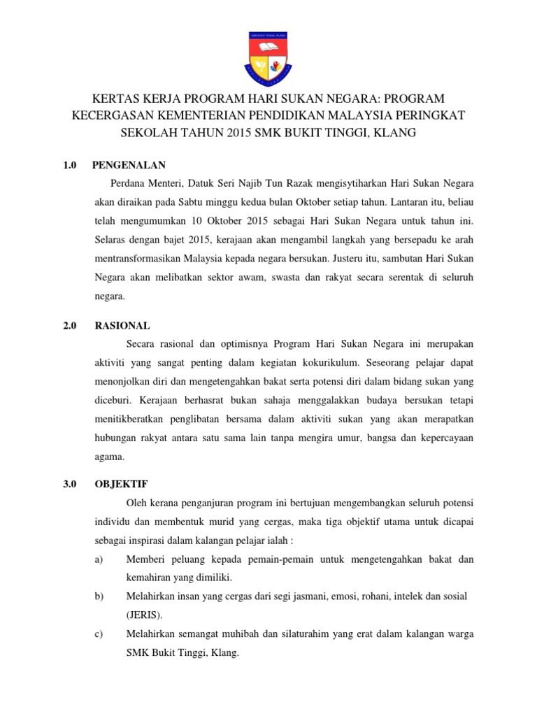 Contoh kertas kerja program sekolah. Kertas kerja sambutan kemerdekaan 2020 malaysia prihatin sudah menjadi tradisi di setiap sekolah … kertas kerja sambutan kemerdekaan 2020 malaysia prihatin. Kertas kerja kawad kaki krs. Hari sukan sekolah ( يوم الرياضي المدرسي) latihan pengukuhan perkataan bahasa arab. Ismail sabri bin yaakub menteri belia dan sukan kementerian belia dan sukan.