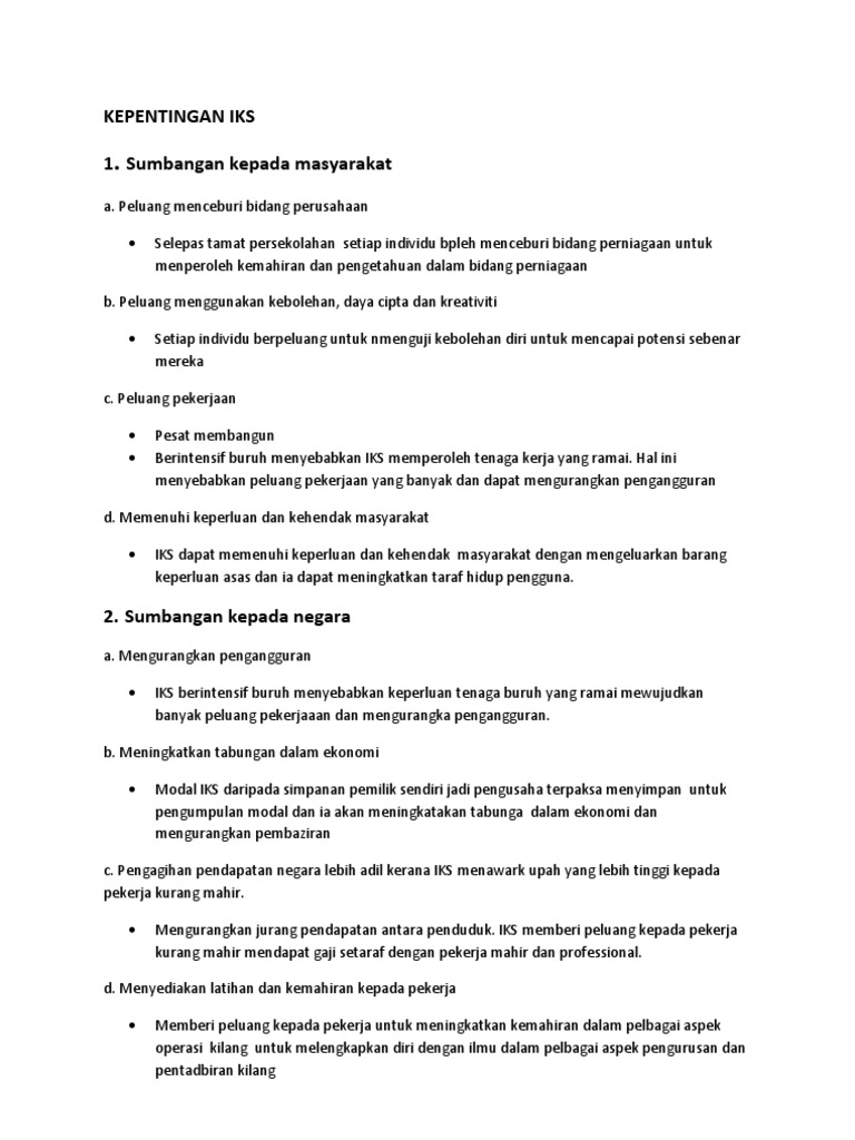 Kepentingan Iks from imgv2-1-f.scribdassets.com Kajian dilakukan kepada penggunaan 19 ajat dan tcknik yang terdapat dajam. Contohnya jika kawasan tersebut banyak mengkuang. Sesebuah iks akan maju jika diberi pertolongan dalam semua perkara terutamanya dari segi pinjaman kewangan. Antara cabaran utama yang dihadapi oleh industri ini adalah dari segi kemahiran dan latihan. Tuntasnya, industri kecil dan sederhana (iks) ini merupakan serampang dua mata kerana kewujudannya bukan sahaja dapat meningkatkan ekonomi malahan dapat membasmi kadar kemiskinan rakyat di negara malaysia yang ini. Perdana menteri, datuk seri najib razak berkata, dana yang disediakan di bawah skim pembangunan pks itu akan. Hasilnya, struktur pembangunan industri di malaysia lebih berbentuk pergantungan dan penyesuaian pengeluaran barangan untuk pasaran eksport. Kepentingan industri kecil dan sederhana yang seterusnya dapat dilihat dari aspek pengagihan semula pendapatan di kalangan penduduk.