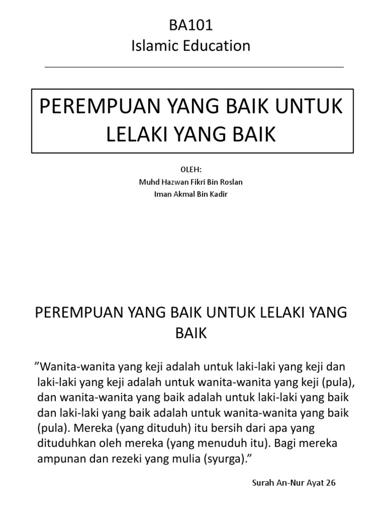 Q S An Nur 26 Youtube from i.ytimg.com Demikianlah beberapa ciri cewek yang baik. Mungkin terjawab persoalan rakan di facebook tadi lelaki yang baik x semestinya untuk wanita yang baik dan juga sebaliknya. Maka pilihlah yang beragama, niscaya beruntung diri.. Kerana ada sahaja wanita yang baik tetapi mendapat pasangan yang tidak baik. Ada beberapa sebab yang menunjukkan dia bukanlah seorang lelaki yang baik. Bukankah ini salah satu contoh bahwa wanita baik yang tidak diperuntukan untuk lelaki yang baik. Kata khabits (jelek) ini merujuk kepada perkataan dan perbuatan. Karena wanita yang menjaga kehormatannya adalah wanita yang baik, dan lelaki yang menghormati wanita adalah lelaki yang baik ^_^